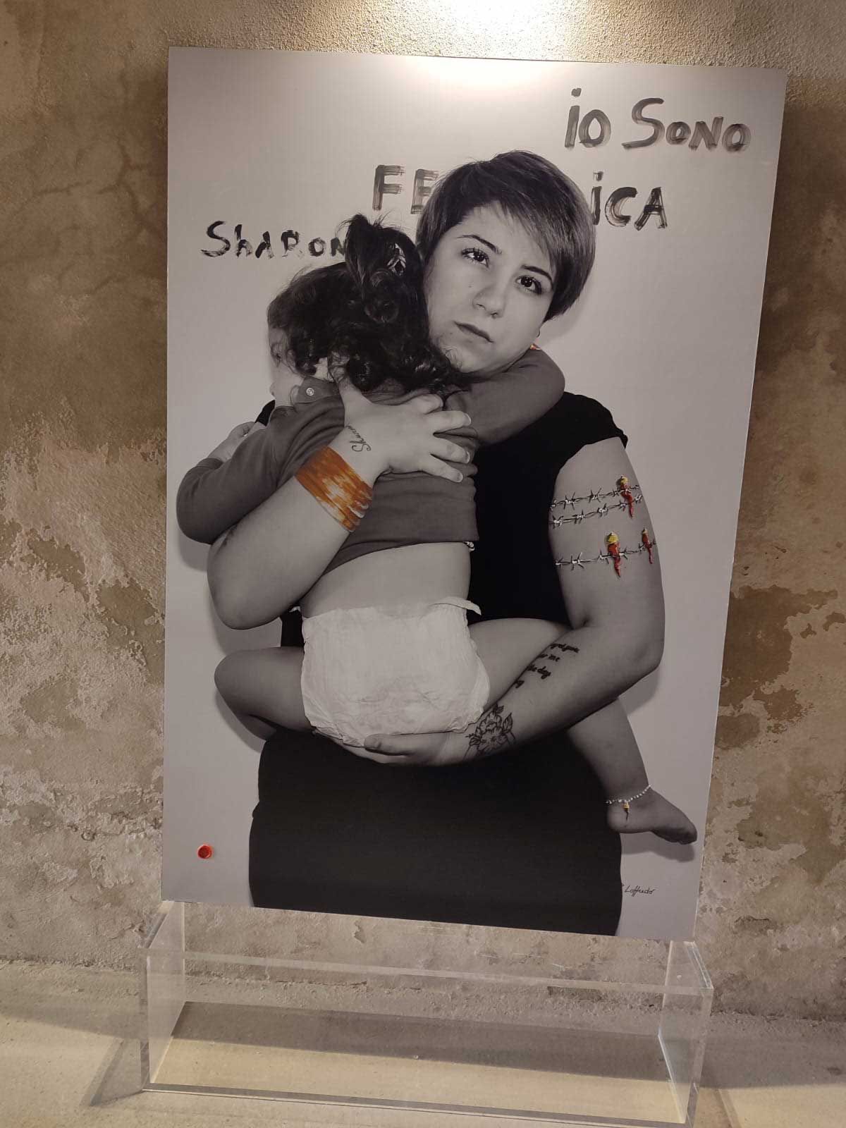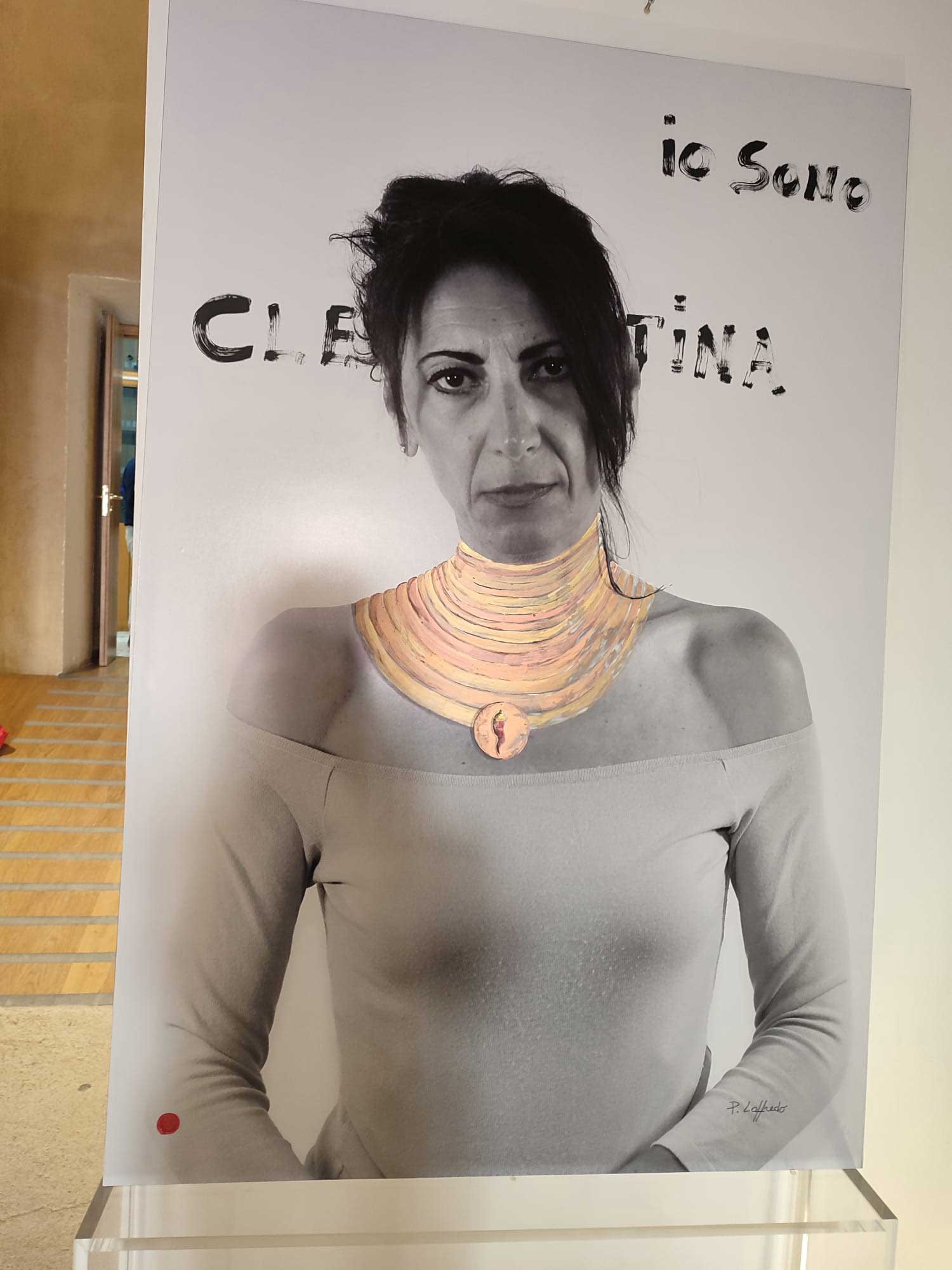 In questo scenario poco confortante, IO SONO diventa una galleria di volti diversissimi tra loro, che - ad eccezione della nota faccia di Antonella Stefanucci, “madrina” dell’iniziativa e socia dell’associazione promotrice, TempoLibero - appartengono a donne comuni, professioniste, operaie, casalinghe. Volti non necessariamente belli o alla moda, volti che reclamano di esistere, che, nella loro assoluta normalità, rivendicano quel diritto ad essere tutelato che è di ogni essere vivente. Nelle fotografie di Nando Calabrese si avverte tutta la tensione e la drammaticità della questione: non donne patinate o ritoccate per apparire più belle, non donne da copertina ma volti preoccupati, inquieti, in pericolo. Gli sguardi penetranti e talvolta cerchiati, stanchi, affaticati scavano nell’animo di chi guarda queste foto e sembrano invocare quel diritto ad esistere condensato nel titolo. Ad alleviare la drammaticità di queste immagini, realizzate in un bianco e nero “lacerante”, l’intervento pittorico di Pietro Loffredo, artista che nel suo percorso ha indagato a lungo il mondo della scaramanzia di tutto il mondo per trarne un insegnamento fondamentale: non basta! Il valore consolatorio ed illusorio di questa pratica tanto diffusa non è sufficiente a diventare protezione, aiuto. E allora, ironicamente ma non senza un velato disappunto, l’artista interviene interrompendo il bianco e nero delle foto e “squarciandolo” con un rosso evocativo, violento, problematico, quasi a voler porgere a queste donne un suo segno di aiuto, un’ultima chance in veste di fortuna che, provocatoriamente, altro non è che un appello per politiche più incisive. Ne risulta una mostra essenziale, priva di orpelli, quasi scarna per la precisa volontà di essere tale. Come se si volesse affermare che dinanzi alle troppe parole, ai troppi proclami, alle troppe promesse…le donne sono e restano sole in un mondo che produce femminicidi ad un ritmo davvero insostenibile.